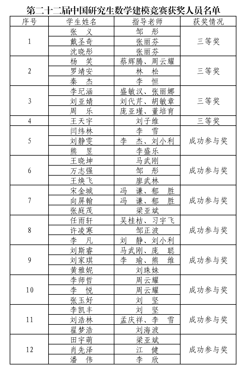 中国研究生数学建模竞赛是“中国研究生创新实践系列大赛”中影响广泛的一项全国性赛事,旨在激发研究生创新思维和提升解决实际问题能力。此次优异成绩的取得是我所研究生培养质量有效提升、学科交叉融合不断加强的集中体现。