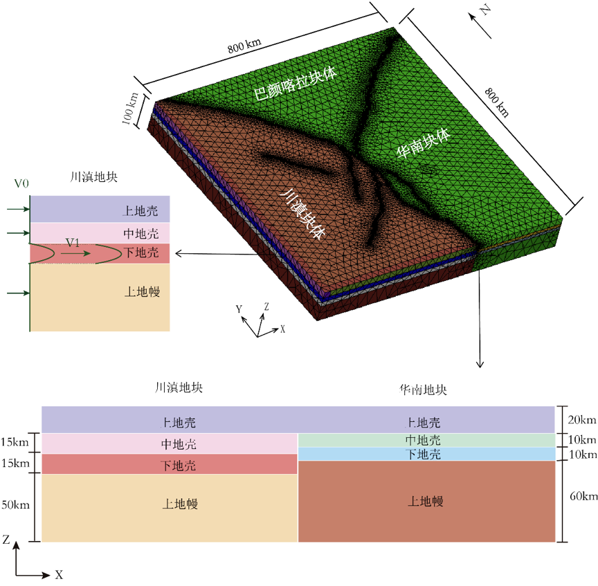 5.采用数值模拟方法研究断裂带应力演化与地震应力触发机理。基于GNSS地表形变数据,开展地震周期变形动力学数值模拟研究。